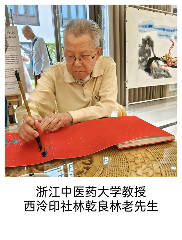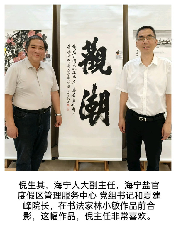 浙江方面前来参加开幕式的嘉宾由美大实业股份有限公司董事长王培飞、美大实业股份有限公司董事会秘书徐红、嘉兴市文艺两新发展促进会会长张健琪、海宁市文化产业协会会长张镇西。海宁市文艺两新发展促进会会长汪淼、浙江中医药大学教授、西泠印社五老之一,林乾良先生、中国美术家协会会员宋子舜、海宁市文联王国维研究会会长刘培良、海宁市文联王国维研究会秘书长汪红杰、盐官古城潮乐之城执行总经理唐伟先生、中国著名摄影家拍潮名家杨利斌。
