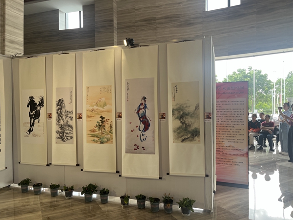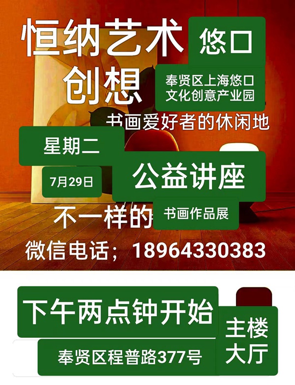 2024年7月29日下午,由上海市美术家协会会员、上海恒纳文化传媒有限公司艺术总监夏建峰总策划的“近现代名家立轴范本展览·现场临摹创作”公益艺术沙龙,在奉贤区程普路377号悠口文化创意产业园主楼大厅成功举办。活动吸引了众多书画艺术爱好者、业界专家及商会代表、区政协部分书画组成员等参与,共同感受传统书画艺术的魅力。
