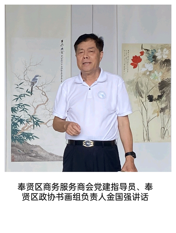 活动特邀上海市书法家协会副主席兼市机关书法家协会主席晁玉奎,奉贤区商务服务商会党建(关建)指导员金国强,奉贤区美术家协会常务副主席胡学东,商会党支部书记、联席会长陆建卫,联席会长庞明等嘉宾出席。开幕仪式上,晁玉奎、金国强、陆建卫分别从艺术传承、文化责任与资源整合等角度发表讲话,为活动注入多元活力。