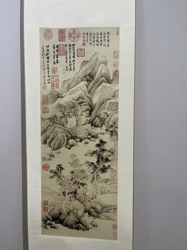 作为沙龙的核心环节,“名家立轴艺术展”展出了近现代名家山水、花鸟、人物题材的高清复刻范本,系统展现中国立轴书画的构图章法与笔墨神韵。总策划夏建峰表示,这些历经沉淀的精品力作,为书画爱好者、青少年及市民提供了临摹研学的优质平台。画家胡学东担任导览老师,带领观众逐幅品鉴,深入解读传统艺术的文化哲思。