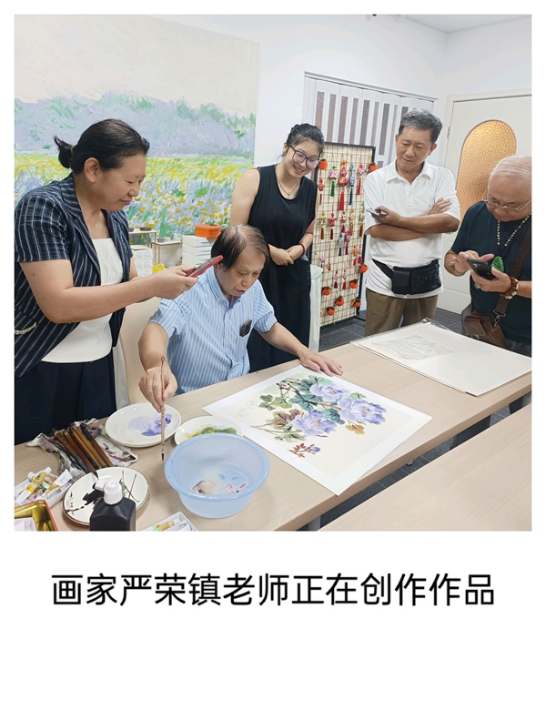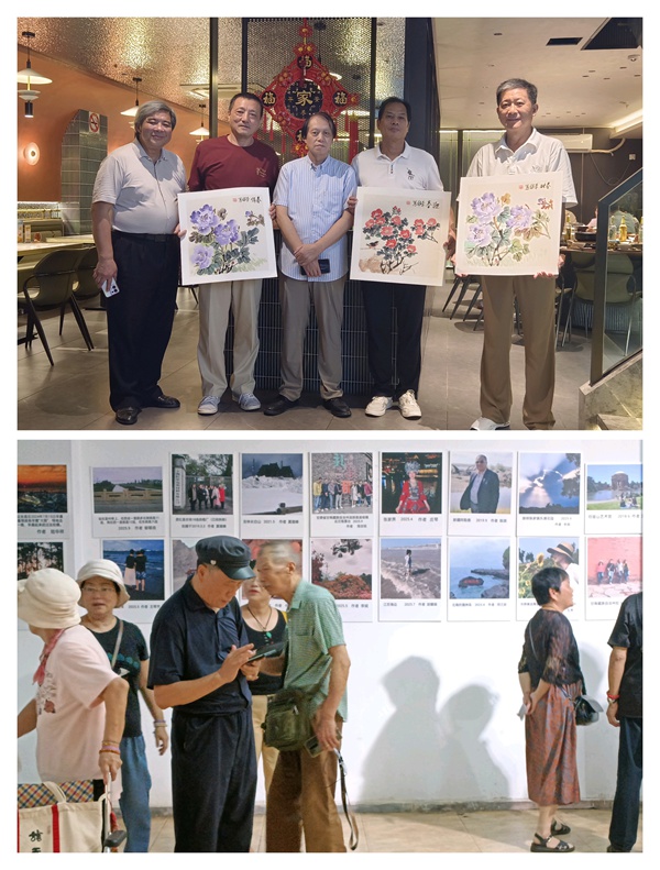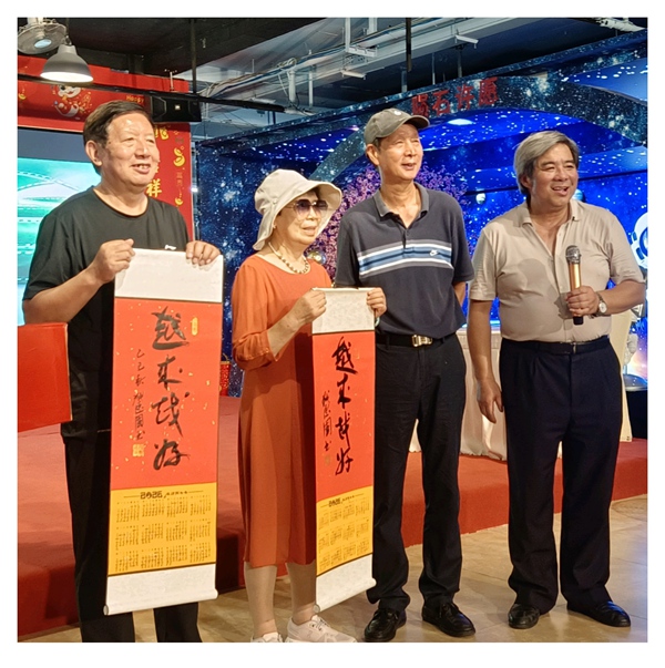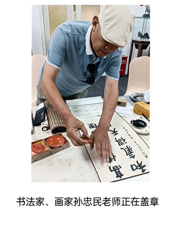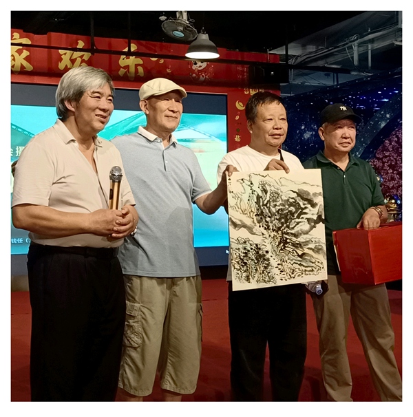 我与夏会长相识于去年知青联谊会,从相知到相熟,如今已是老朋友。他随即向我介绍了正在一旁挥毫泼墨的三位画友——书法家姚惠国、孙忠民和严荣镇。他们正为开幕式精心创作书画作品,以艺术声援曾为农场奉献青春的知青兄弟姐妹。