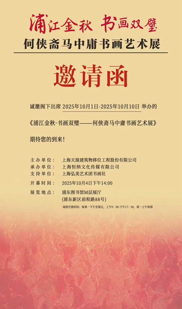 预祝天演文化系列之五一何侠斋马中庸八秩书画展圆满成功!