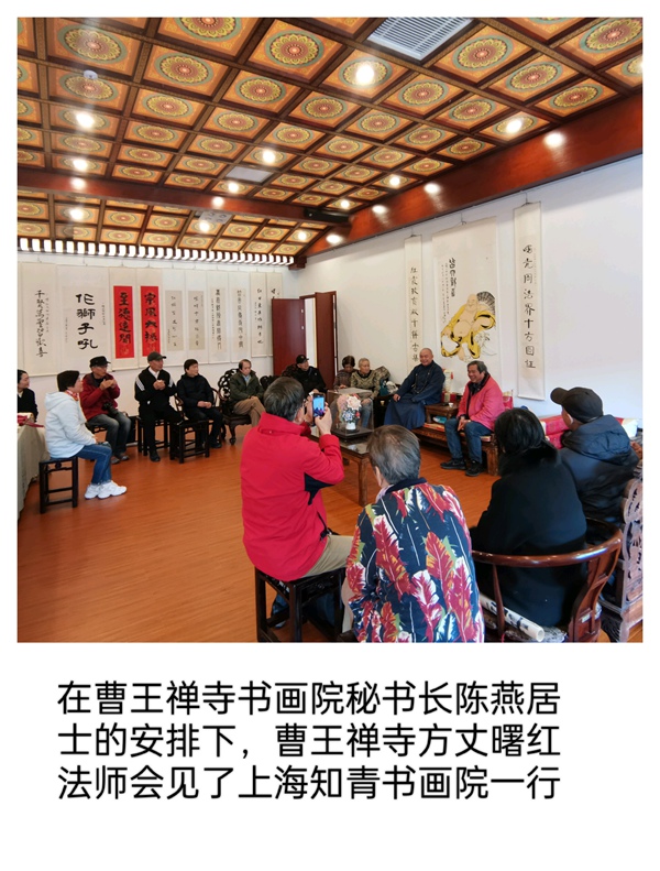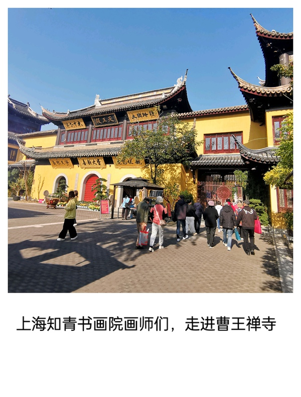 秋日晴和,翰墨生香。今天上午,上海知青书画院夏建峰院长率领本院十四位画师,应嘉定曹王禅寺之邀,前往这座千年古刹进行了一场充满禅意与墨韵的艺术交流雅集。参与本次活动的书画家包括薛梅娣、陈国珍、黄国庆、孙忠民、戴丽华、吴兴強、林小敏、华静、邵南华、姚惠国、马咏鸣、严荣镇及吴兴强夫妇等。