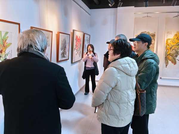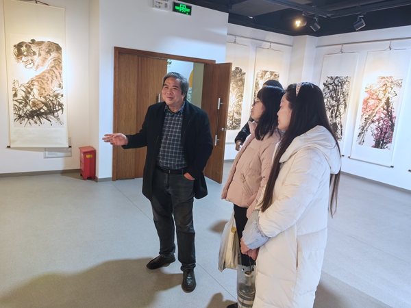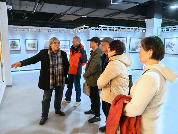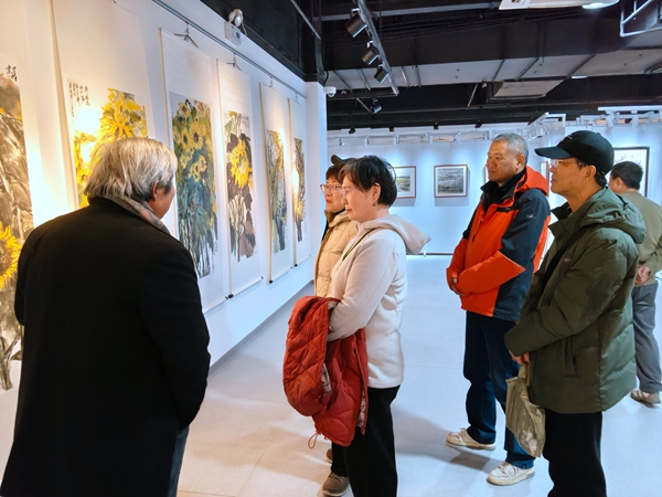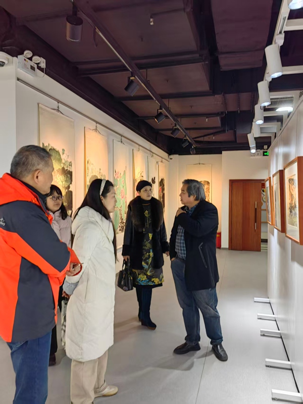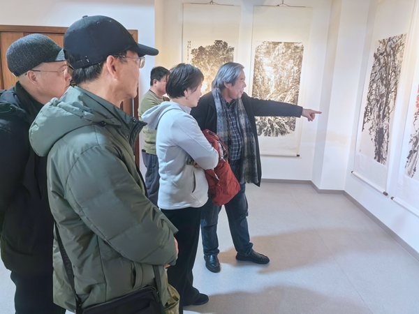 开幕式将于3月18日正式举行,而今日的预展中,夏老师已难掩欣喜之情。他一遍遍地为观众细致导览,从创作背景到笔墨意趣,反复讲解,乐此不疲。观众们或驻足凝望,或低声交流,更争相与老师合影留念,记录下这场艺术与情谊交融的春日雅集。
