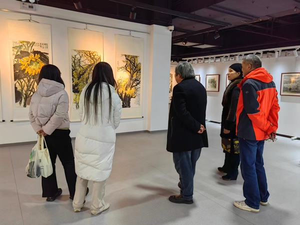 上午一早,作为学生的我(陆菲菲)与师兄杨伟杰陪同夏老师一同抵达展厅。尽管天气微凉,已有数位观众提前到场等候,随后又陆续迎来不少艺术爱好者及夏老师的挚友。展览特别邀请了书画名家陈琪、杨正新、韩硕、车鹏飞、晁玉奎、刘树人题字祝贺,为展览增添了学术与人文交融的厚重感。