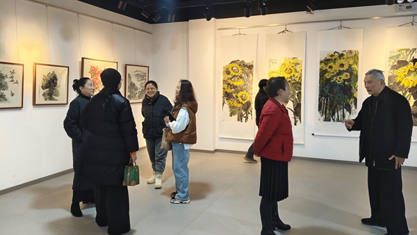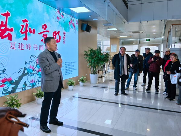 随后,夏建峰老师亲自导览,带领观众逐一欣赏展出的书画作品,并分享了每幅作品背后的创作故事,使观众得以更深入地理解其艺术追求与情感表达。