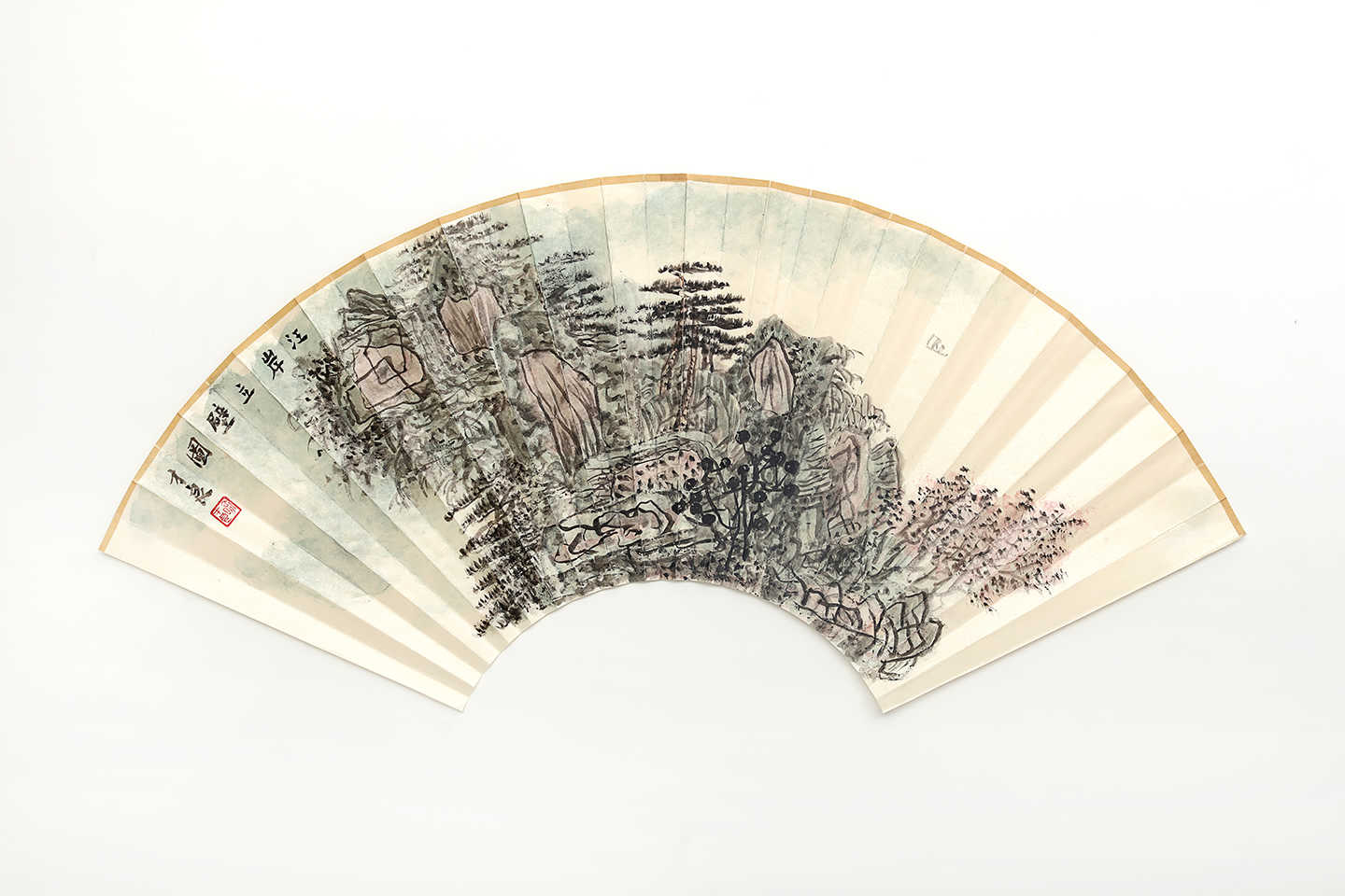 2010年2月上海人民美术出版社《扇面100图例》水墨山水扇面被编入其中。