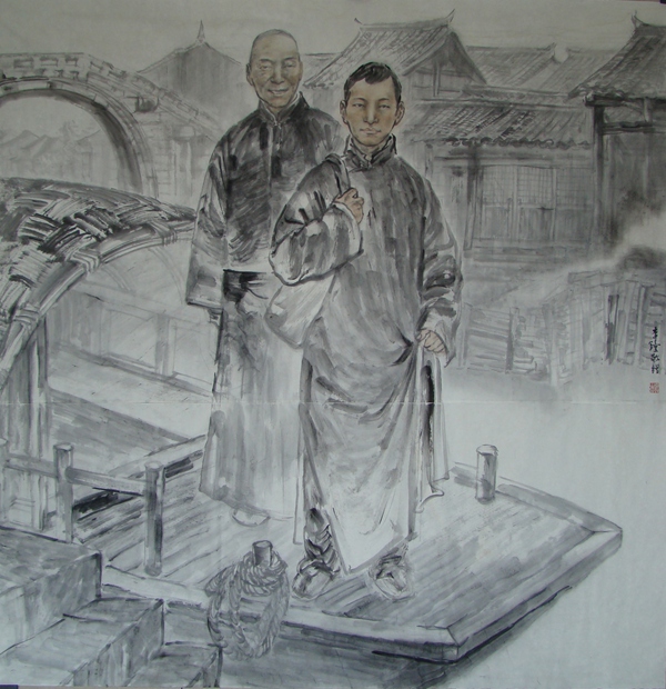 自徐悲鸿、蒋兆和二人始,中国水墨人物画加速了探索的步伐。以中国美术学院为滥觞中心的浙派人物画,赓续至今出现了李震坚、周昌谷、方增先、吴山明、刘国辉等等一批又一批优秀的艺术家。这些画家与当时的北方画家相比,在用墨用色上透明多变,在用笔上飘逸清秀,并更加注重书法韵味。他们在刻画当代人物的形象方面做出了许多有益的探索,较好地缓解了同时追求写实造型与笔墨时产生的生硬感。实践说明将光影写实语言与传统写意人物画的勾勒相结合,是能够表现新时代、新都市、新人物的。