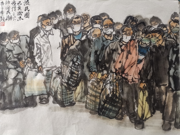 《流民图》34×45cm 中国画 李钟 2020
