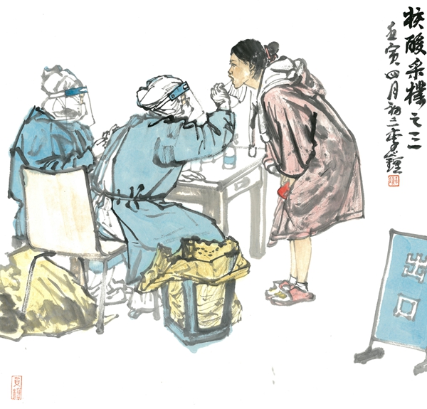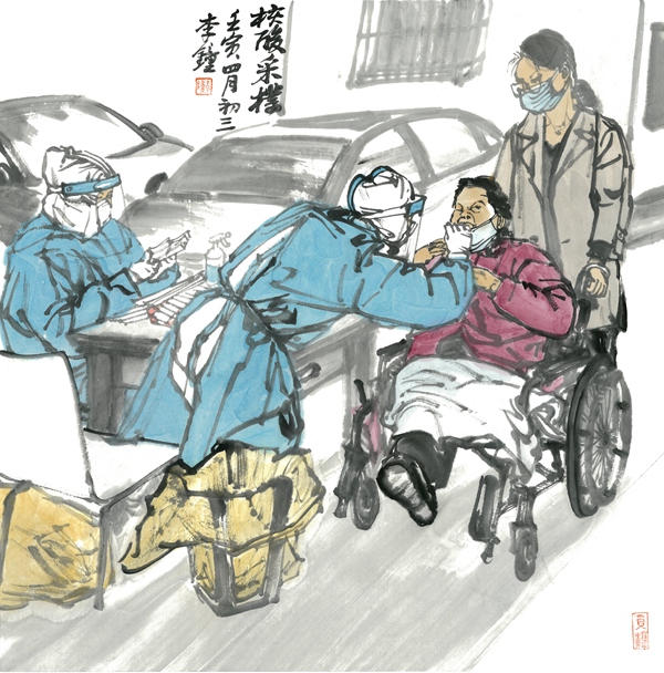 李钟 《核酸采样之二》 中国画 69×69cm 2022