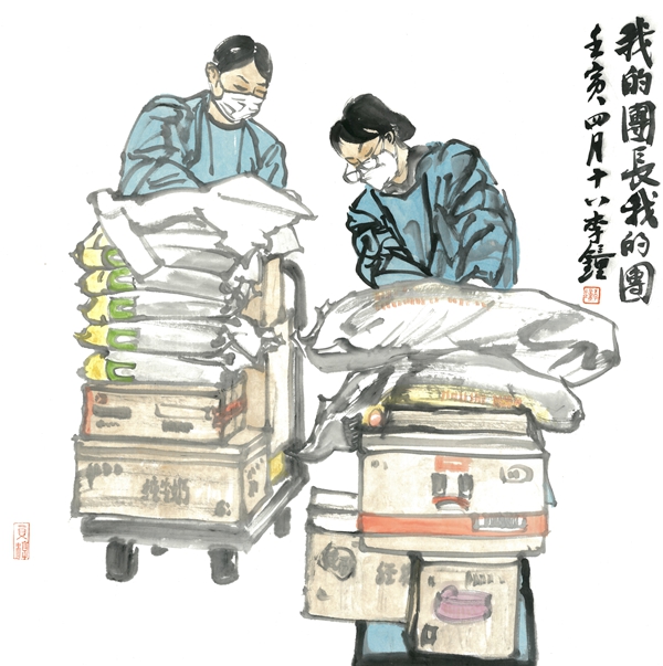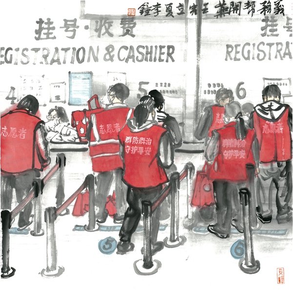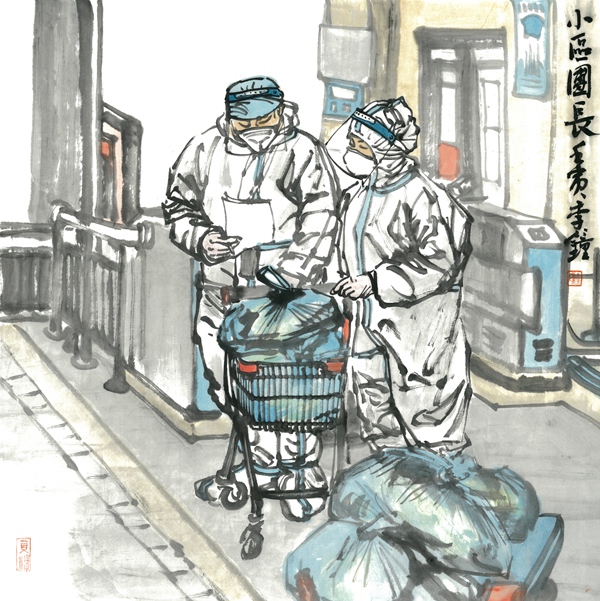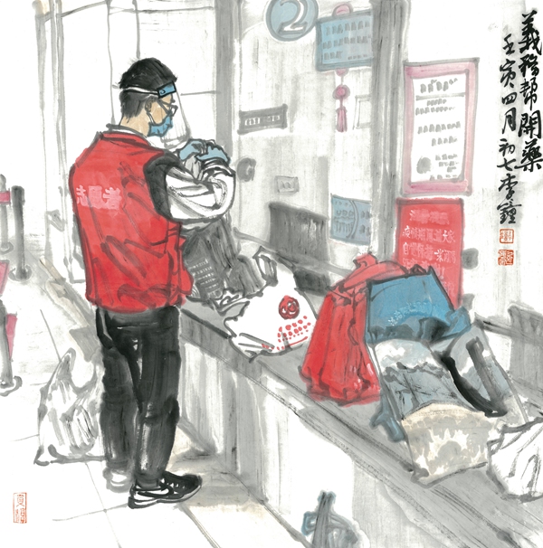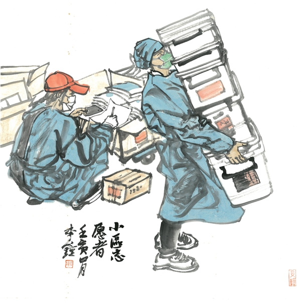 《小区志愿者之一》69×69cm 中国画 李钟 2022