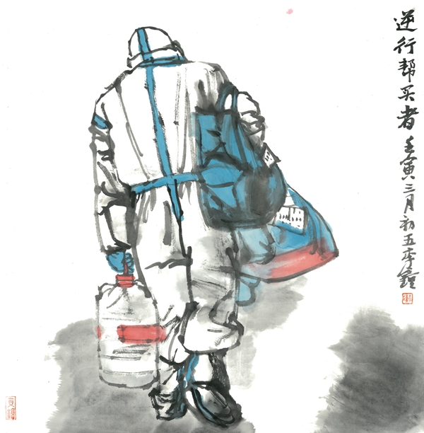 李钟 《逆行帮买者》 中国画 69×69cm 2022