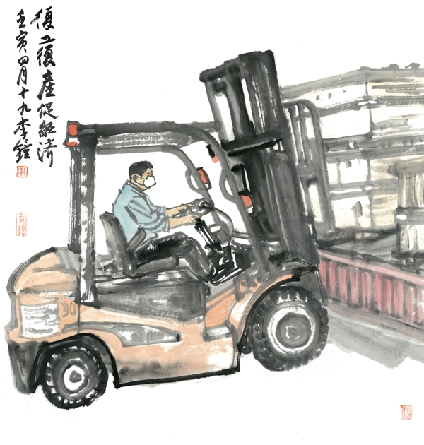 《复工复产促经济》69×69cm 中国画 李钟 2022