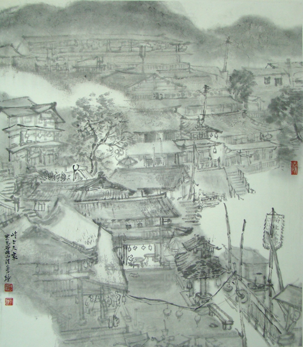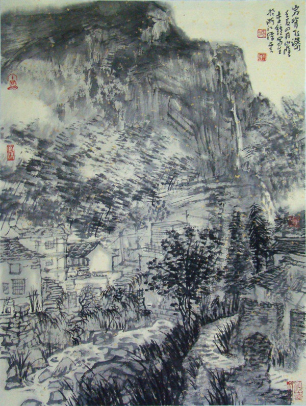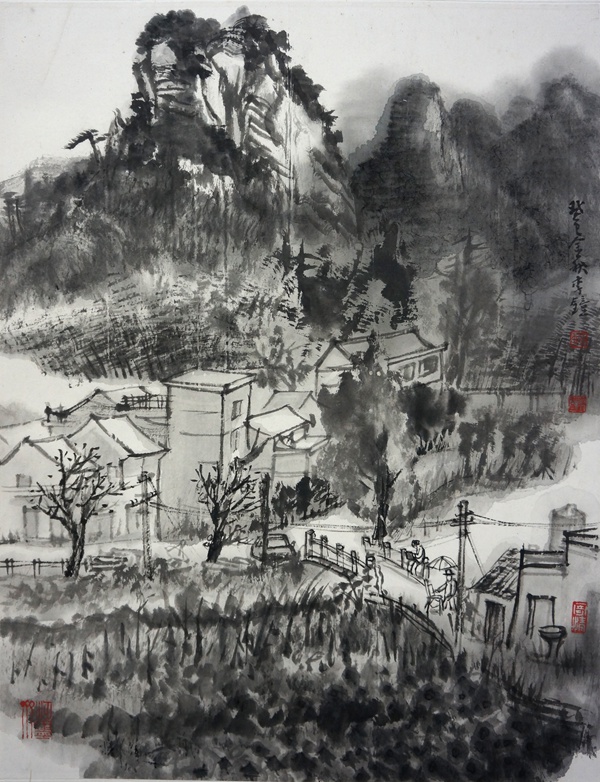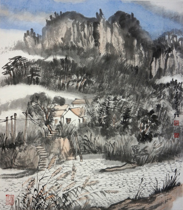 岭上人家 52×46cm 水墨写生 2013 李钟