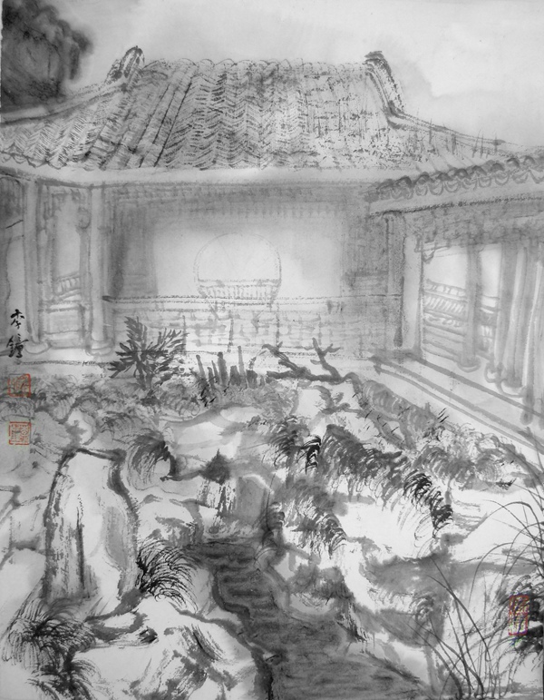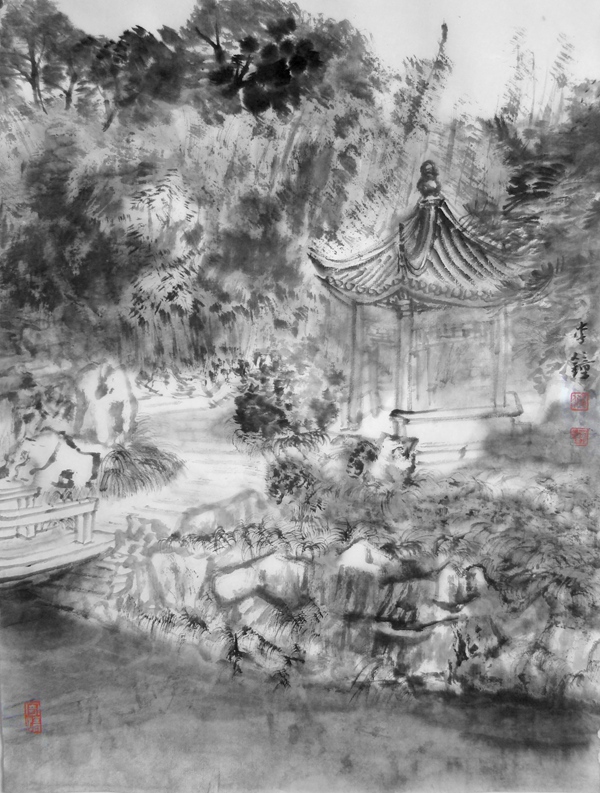 兴园度鹤亭 46×34cm 水墨写生 2011 李钟