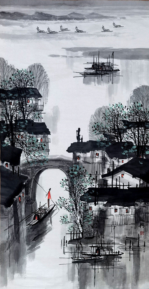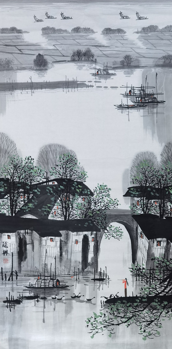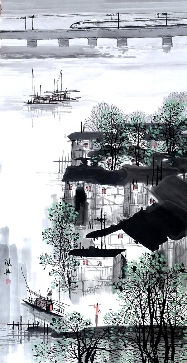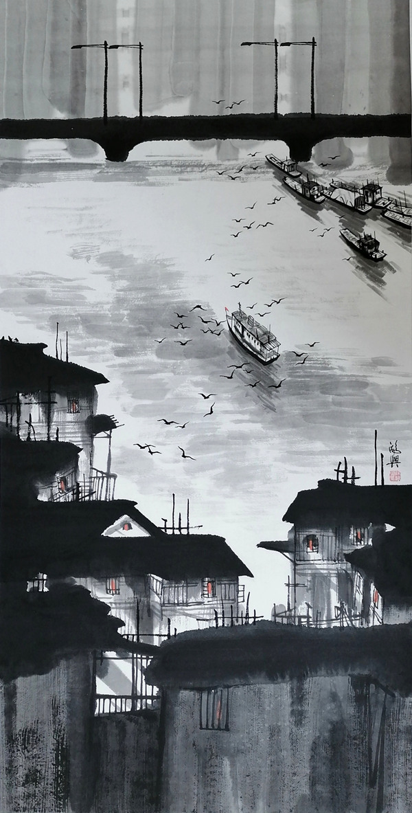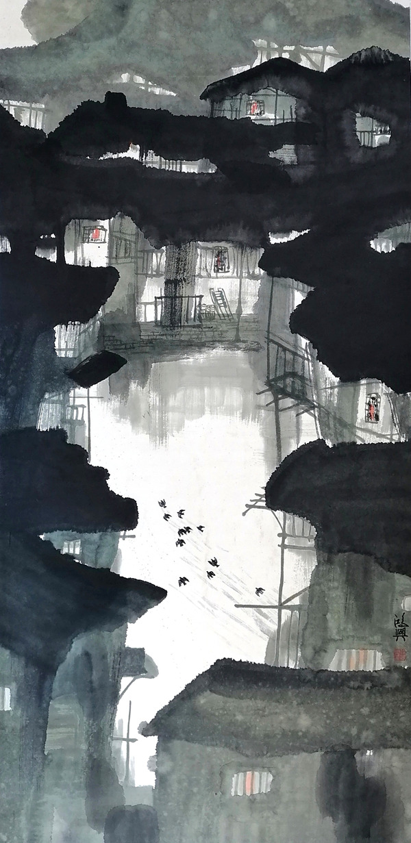 徐鸿兴的版画优雅独特,引人入胜,同时他又把版画元素融入国画创作之中,令其国画作品形式新颖,气势夺人,水墨淋漓,风格独特。
