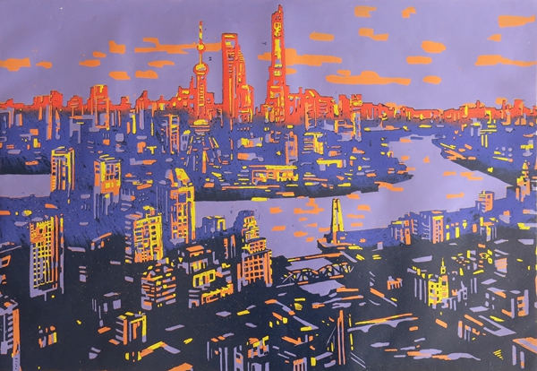 浦江二岸 54×78cm 绝版套色木刻