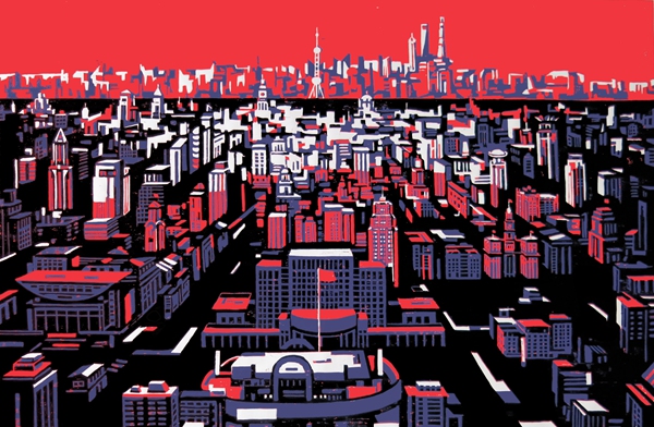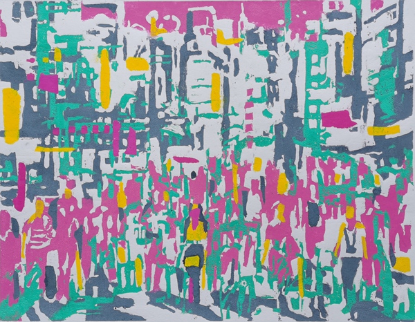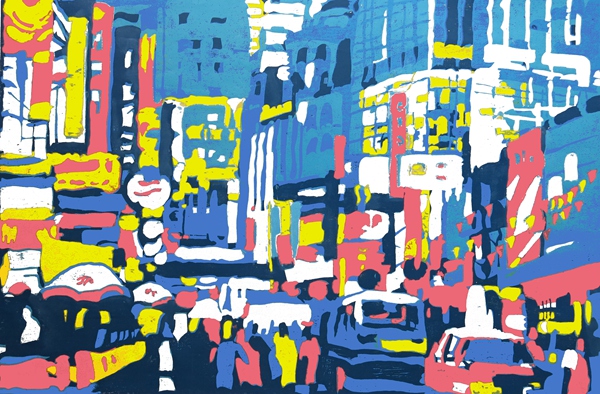 闹市 53×60cm 木刻、纸版套色