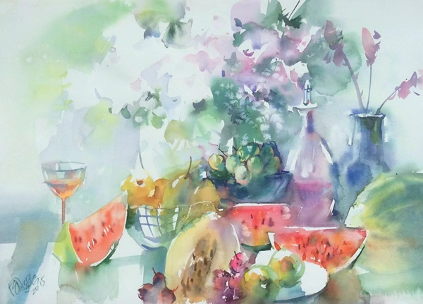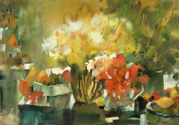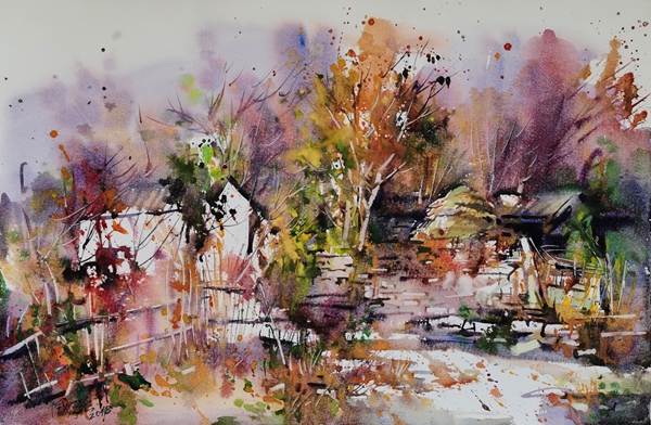 水彩画创作过程的不可预知及不可复制性,为画家带来各种机遇和挑战,随时面临各种不同技巧的考验,瞬间须掌握物体的形象及因水色的流动、渗化、停滞所产生的偶然魅力,透彻的了解水,巧妙地运用水就一定能在水、色的世界里游刃有余。