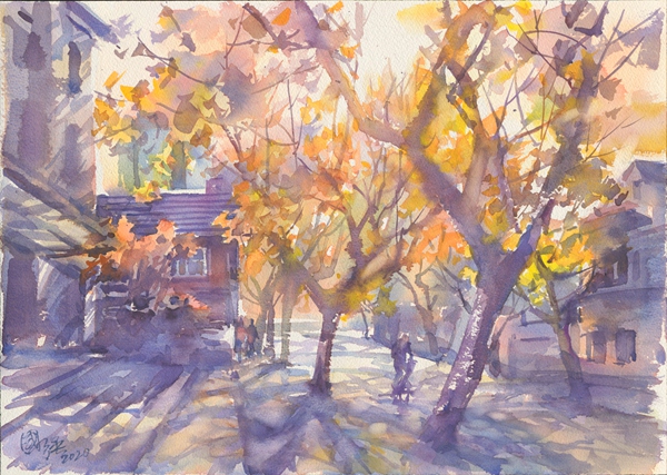 落叶满地金 40×60cm 水彩