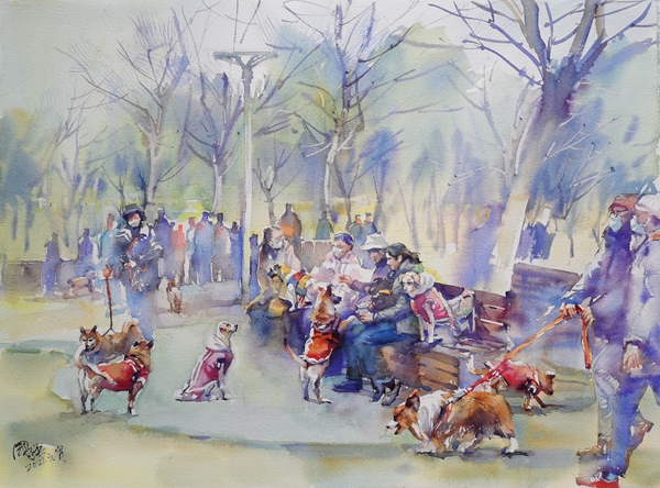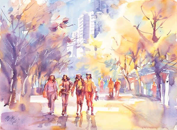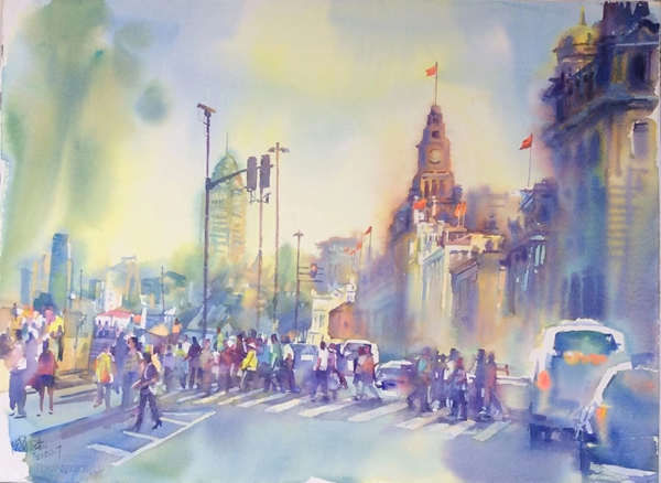 多年来城市景观、城市生活都是我重点关注的题材。无论国内或国外的历史建筑或现代景观,不仅留下了以往的记忆,也记录了这座城市的变化,激起我写生及创作的欲望,我的目光始终关注城市中每个角落各式人物的活动状态,我试图用自已的图式去记录一个个平民百姓故往今来在城市日常生活的瞬间故事,反观近年来我这些作品,只是探索路上一小步,还有很长的一段路…