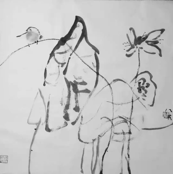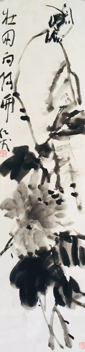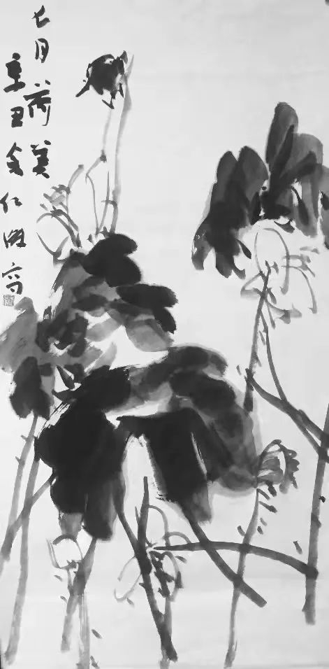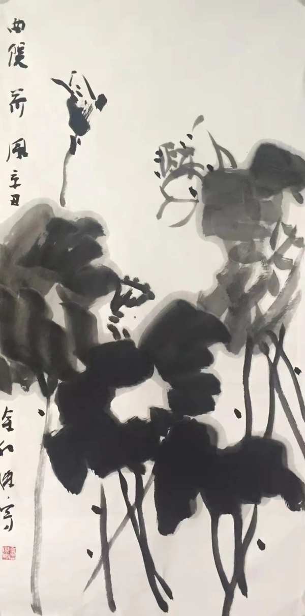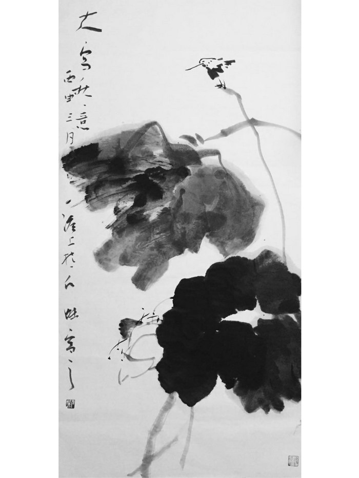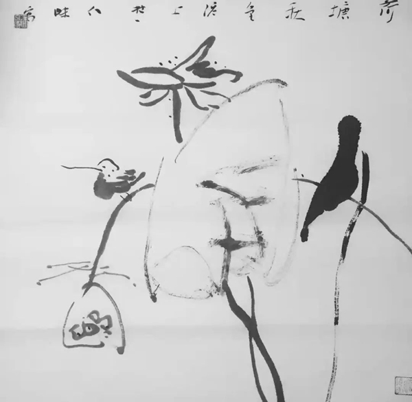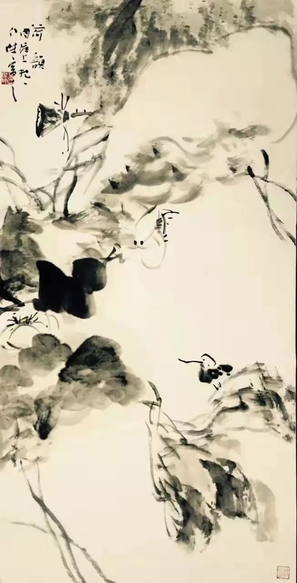 于是,在画坛便有了徐渭、朱耷这样的奇才怪杰。徐渭画荷豪放泼辣,水墨淋漓,神完气足;朱耷画荷则纯以笔墨取胜,形式简练,绝俗剔透;但观余仁杰笔下的荷,繁与简、枯与湿、重与轻、热烈与冷逸竟然兼而有之,倘若没有一定的功力、足够的才情、天赋的灵性,怕是很难合二为一的。