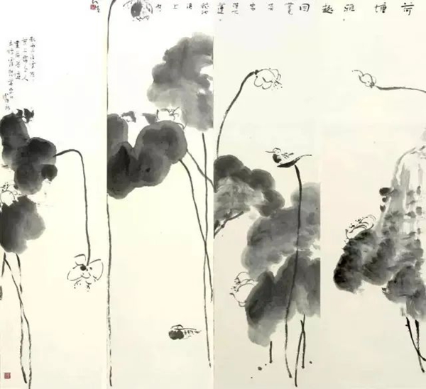 余仁杰《荷塘雅趣》四条屏