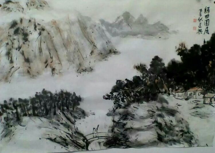 伏道兴, 1968年9月生于江苏金湖。号梦齐斋,又号梦斋,定居上海,师从海上大家徐正濂先生,精研书画印30 余年,所作苍厚古拙,其写意山水独创破锋乱点皴法,颇得业内赞赏,书画印作品多次“美术报,书法报,书法杂志,书法导报,中国书画”等专业刊物发表,多次参展全国书画篆刻展,西泠印社全国展等,曾任东坡书画院副院长,复兴印社社长,齐白石艺术研究会理事,上海市书法家协会会员,海墨画会会员等。地方电视台曾作专题介绍。