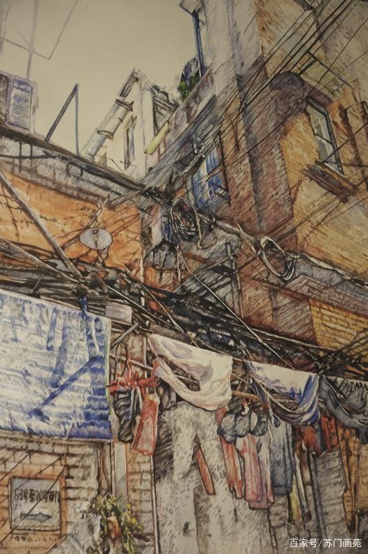 她的《儿时记忆》作品,把那年代的繁华都市杂乱情景留下。虽杂乱挤拥,却不失都市的喧嚣味。这正是繁华城市里街头弄里的真实写照。这幅作品不区手法,把所见场景用水彩画技法描绘而出,将中西绘画技法合壁之韵味藏在其中。卢增贤女士把挥之不去的记忆、心底的感觉尽情释放,用上海闺秀之细腻心景描绘所见所思所想。在她的作品中能看到她曾有西画的基础,也融有中国画的色彩与感觉。期盼卢增贤女士在不断的进取中绘画出更多精彩作品,走出与时共进的新路子!