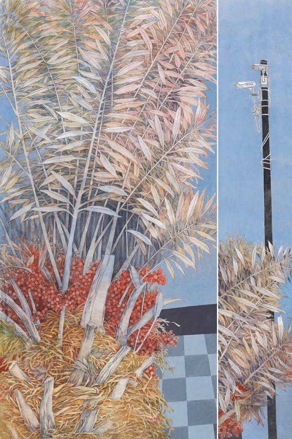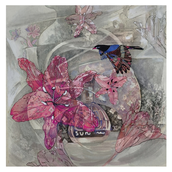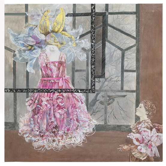 No.2 现实与虚幻交织,时间与空间错配,过去与未来重叠,常常出现在创作冲动带来的意境中。艺术不会拘泥于表现具象世界,“她”更渴望短暂地与现实保持一定的空间距离去描述梦幻中的物事,并沉浸在每一幅作品完成后的愉悦中。
