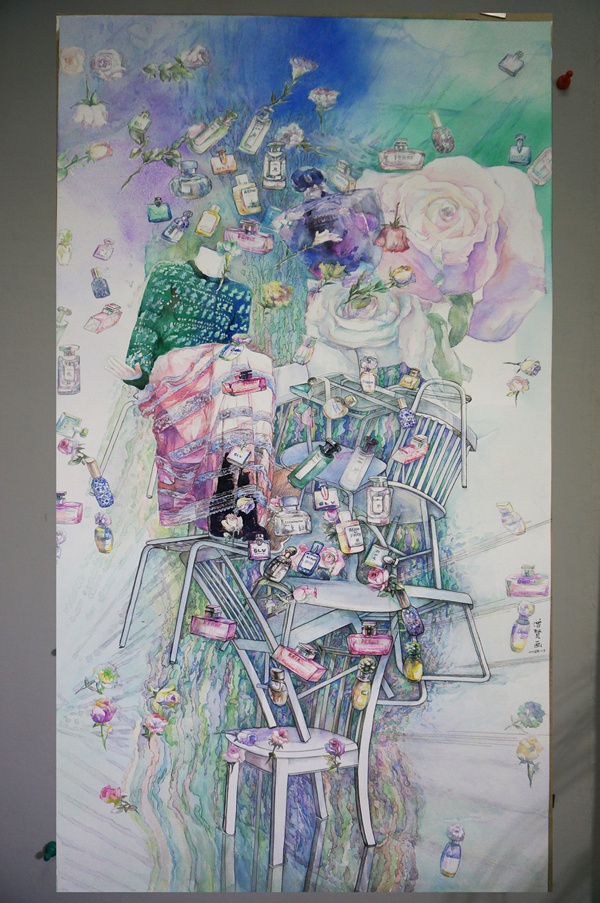 《恋恋香雨》宽96厘米 高180厘米 水彩画