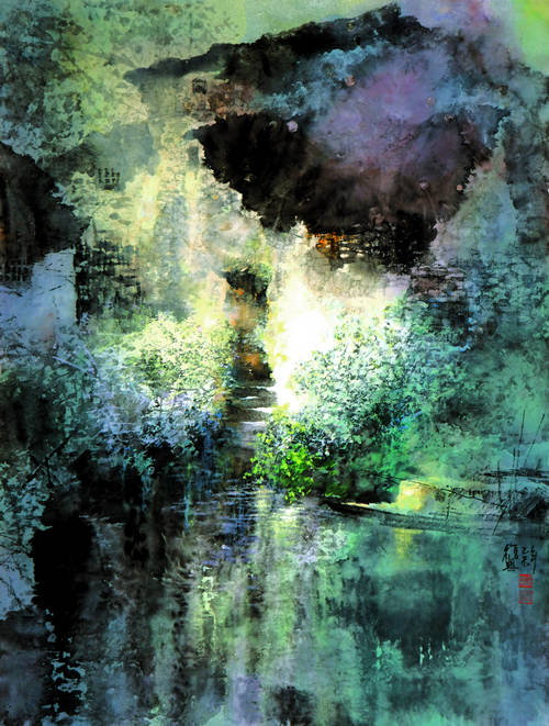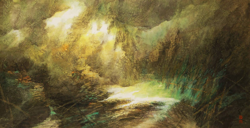 张复兴近十年来踏山涉水,历游山川,探索绘画的新理念、新技法和新境界,寻求表现中国画的当代语汇和个性特质,以直抒心性的方式和自由开放的情怀,力图破解多画种的界线,将不同绘画元素与传统笔墨相融合,构造出一种极具原創的技术,从而形成了全新中国画山水的表达形式。