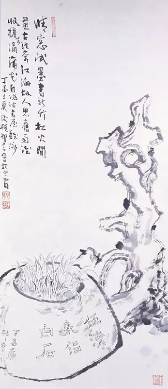 顾村言 蒲石图 38x70cm