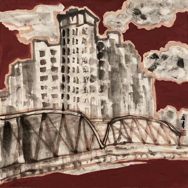 印象北外滩——上海大厦 68×68cm 纸本设色