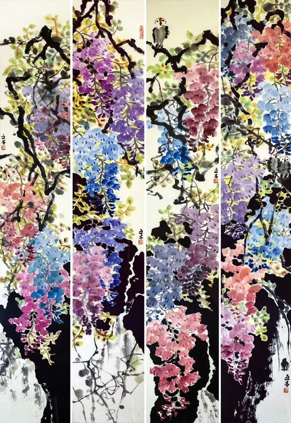 紫气东来 22.5×180cm×4 纸本设色
