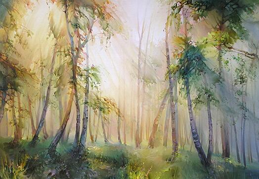 波兰艺术家玛尔格札塔‧什切钦斯卡是水彩画画家。她的画风轻柔,她创作就像在倾诉自身对自然之美的礼赞。她体悟了森林、微风、绿草、花丛、光线和色彩的融合,并用画笔将其描绘出来。