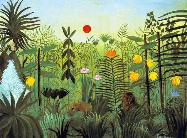 卢梭是自由的,他不奢求在这个世界上多得一份物质的享受,或别人的恭维,那是心灵的枷锁。当他离开这个世界时,告别的,只有贫穷,还有他热爱的艺术。他的心充满孩子般的稚趣,如他的画,在自然或在梦里,徜徉。用孩童般纯真无瑕的眼睛去观察世界和感受生活,他的画面具有超越这个现实世界的真实感,仿佛进入了上帝初创的伊甸之园。其实,他要的很简单,端起调色盘,画画。