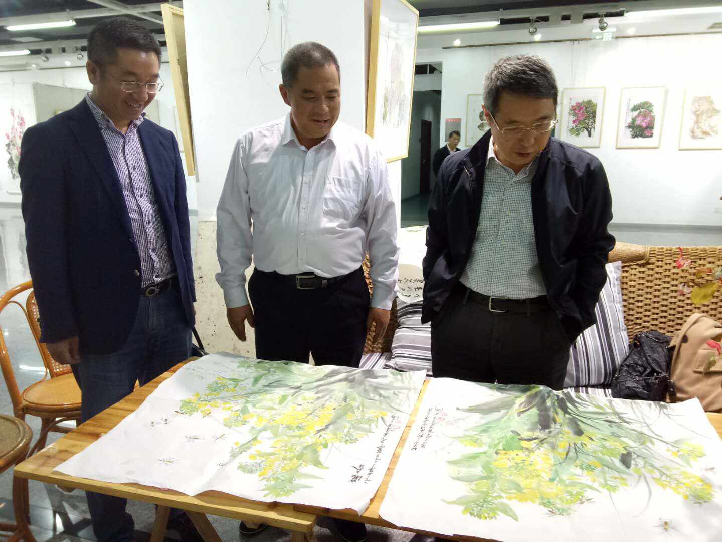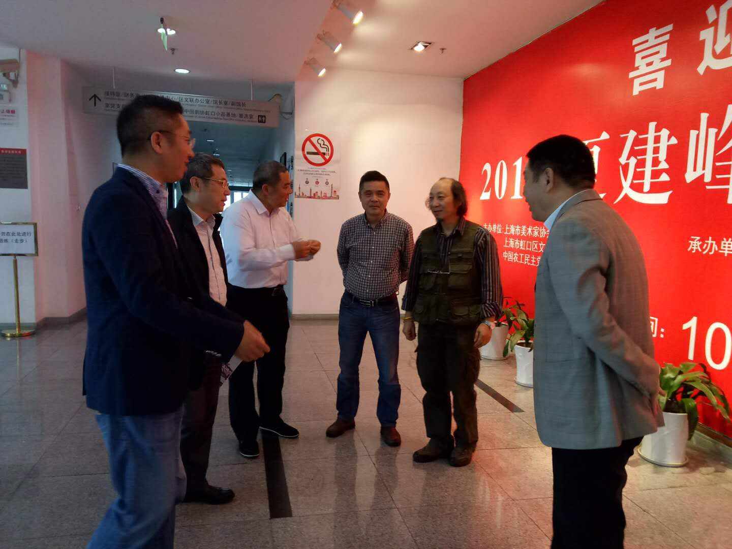 10月19日上午,农工党上海市委秘书长王晓东到上海市虹口区文化馆,参观了画展。虹口区文联主席陆健、区美协主席余仁杰、区美协副主席兼秘书长农工党党员王海频老师一同参观了画展。此次画展精选了画家夏建峰的80幅作品。作品丰富多彩,或墨色淋漓、灵思妙构,或色彩斑斓、气韵生动展现题材多样化,尤其以花卉为主,喜气洋洋。