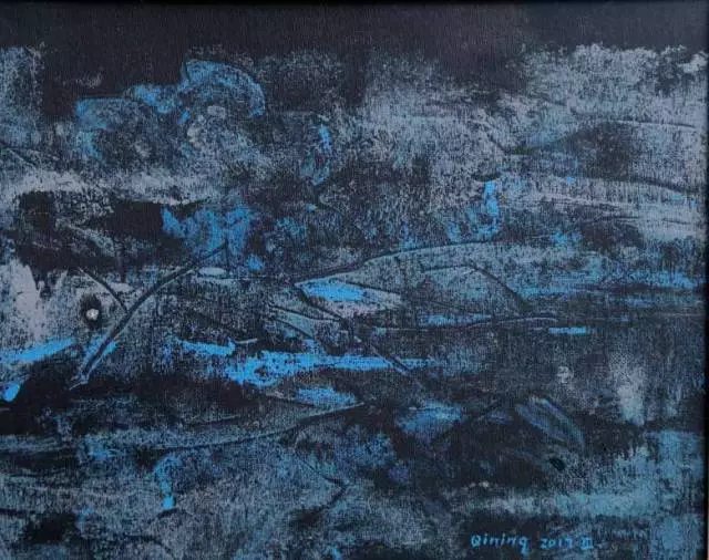 凌启宁 蓝之1 24×30cm 布面丙烯 2017年