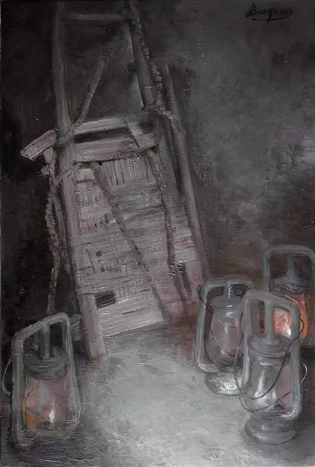 夏葆元 念长征——黎明前的马灯 75×75cm 布面综合材料 2016年