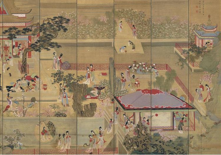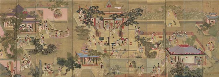 画后宫妃嫔生活百态,画工非常精细。