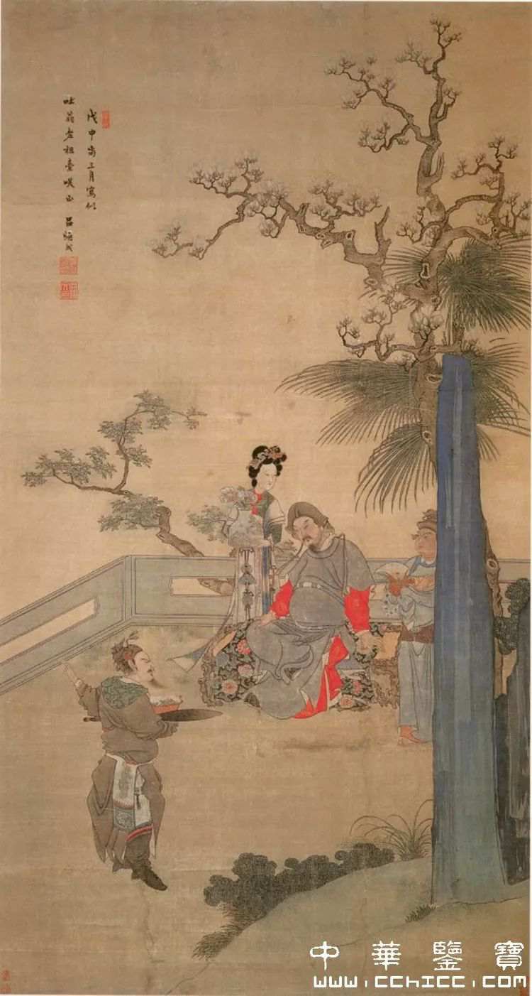 描述: 吕焕成 岳飞参花图 轴 清 绢本设色