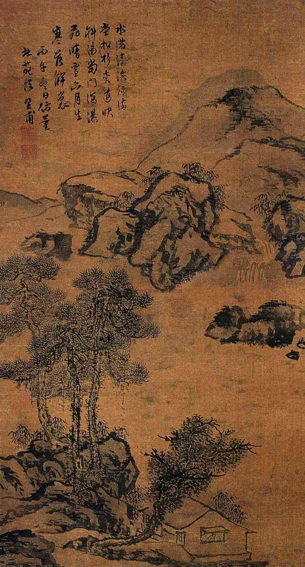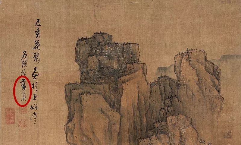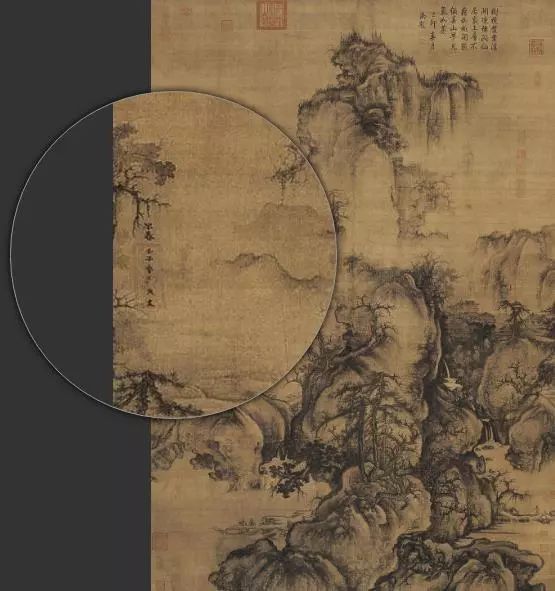 李唐,南宋画家,字晞古。初以卖画为生, 宋徽宗赵佶时入画院。李唐《万壑松风图》隐款“皇宋宣和甲辰春,河阳李唐笔”于远处山峰之中。