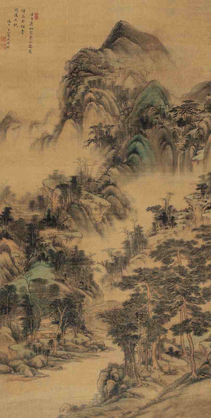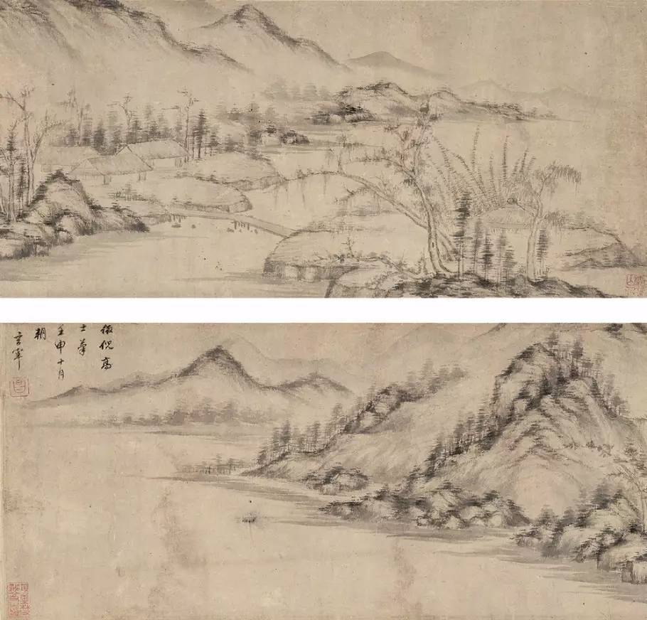 王时敏,“清四王”之一,开创了娄东画派,到了晚年,其真迹者,署名时一定是斜的,从右往左斜,不斜者多是他的儿子王撰代笔。