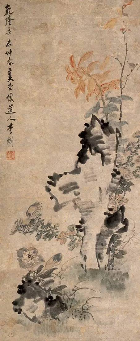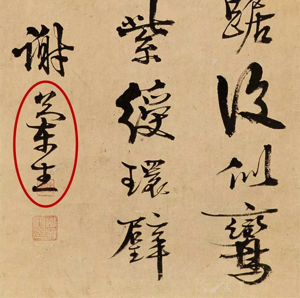 蓝瑛到了晚年,落款“蓝瑛”的“瑛”字,本是“玉”的旁,但他只写一竖就代表“玉”字了。
