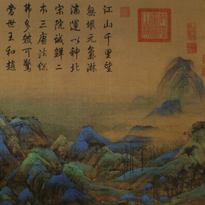 北宋王希孟的《千里江山图》卷(故宫博物院藏)诞生在徽宗朝政和三年(1113),在此前的七八年,张择端绘制了《清明上河图》卷,这一切都不是偶然的,也不单单是王希孟等人的聪慧所致,这一批铭心绝品的出现,是北宋立国以来一个半世纪的社会开放、经济发展和文化积淀在绘画艺术领域里的必然趋势,构成了北宋绘画艺术发展的重要阶段。