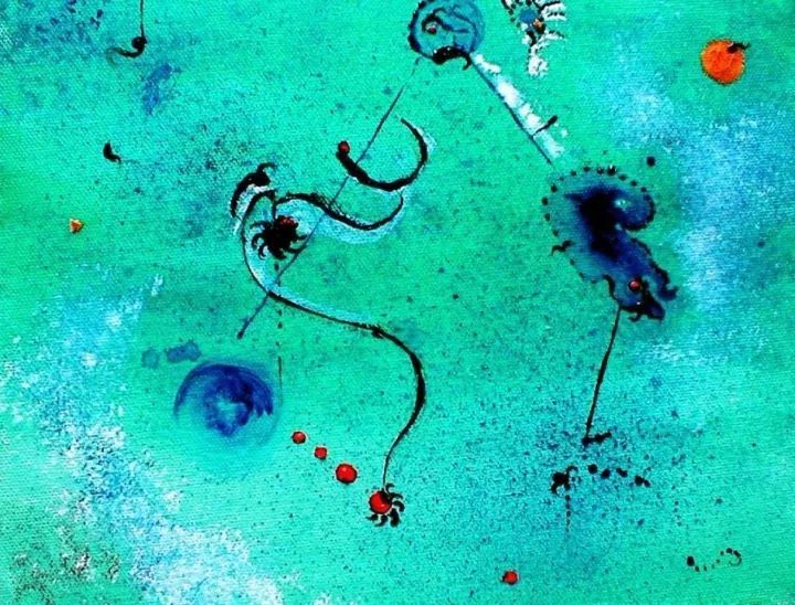 正如米罗自己所说的那样:“当我画时,画在我的笔下会开始自述,或者暗示自己。
