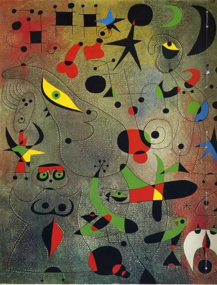 米罗《黎明前的星座》,1941年很多人在见过米罗本人后,纷纷惊叹眼前这位传统克制的艺术家,居然能在画布上释放出,如此惊人的视觉能量。