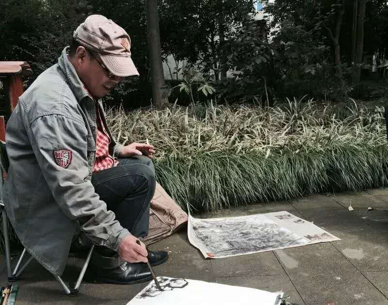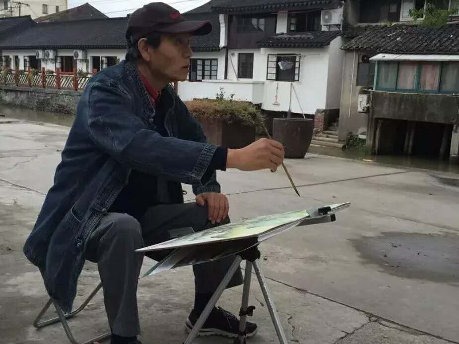 上海美协副主席、秘书长陈琪在奉贤青村镇写生示范