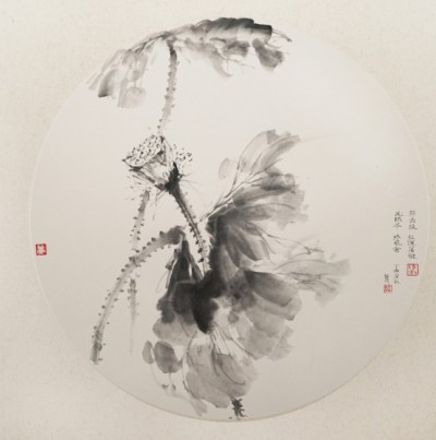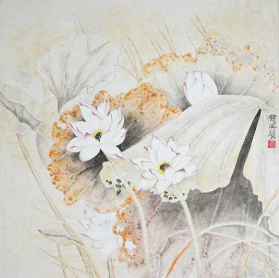 陈晓云《海湾公园荷花写生 4 》国画 45×45cm